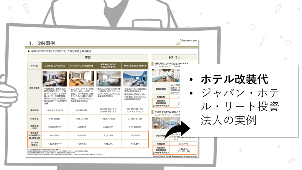 【ホテルREIT事例】投資額とADR(客単価)。札幌と浦安の実例で「改装」の効果を見る。